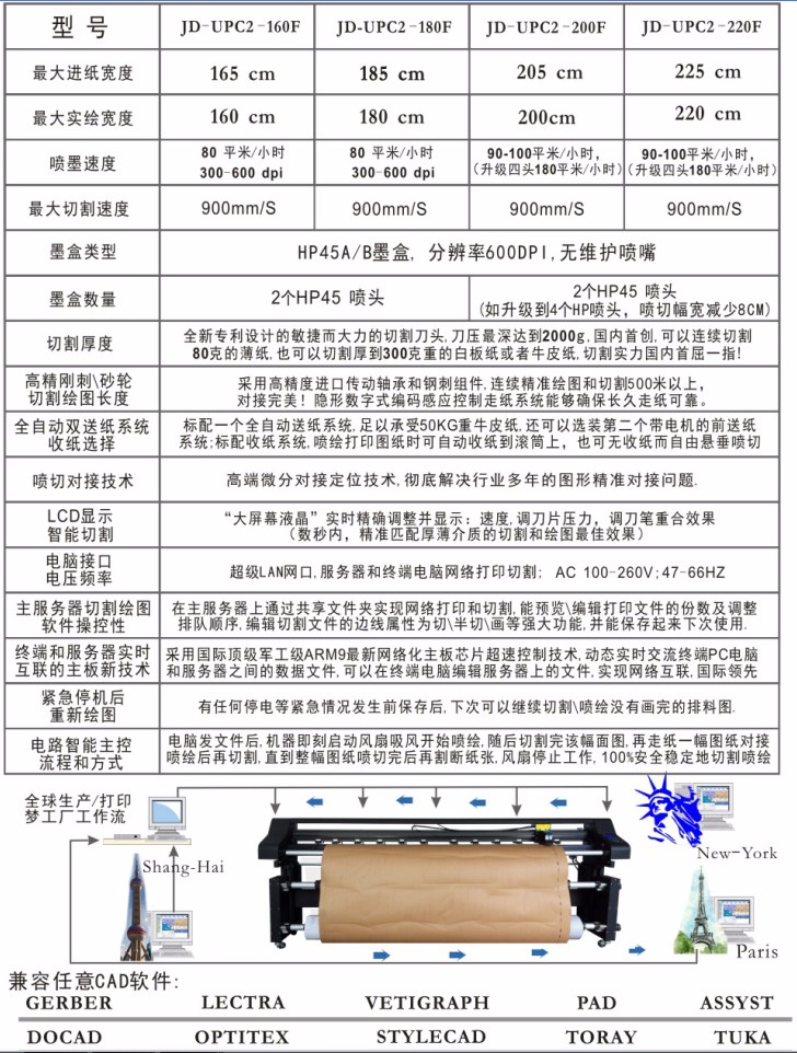 錦德UPC噴墨切割機器參數(shù)規(guī)格與說明:
