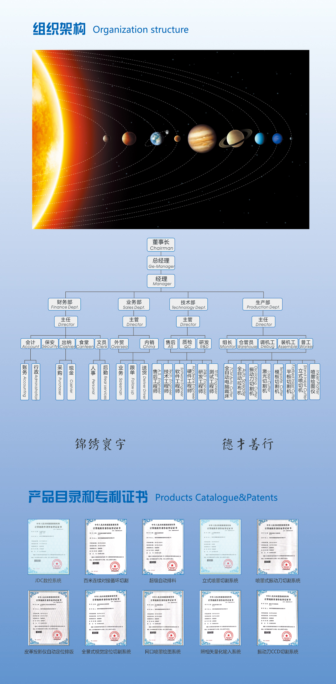 Advanced and mature rolling mesa design is adopted, the platform width can be customized size, the theoretical cutting length is unlimited, the use of vacuum suction design, super strong wind, strong suction (small sample adsorption is no longer difficult); Automatic camera positioning function: aut