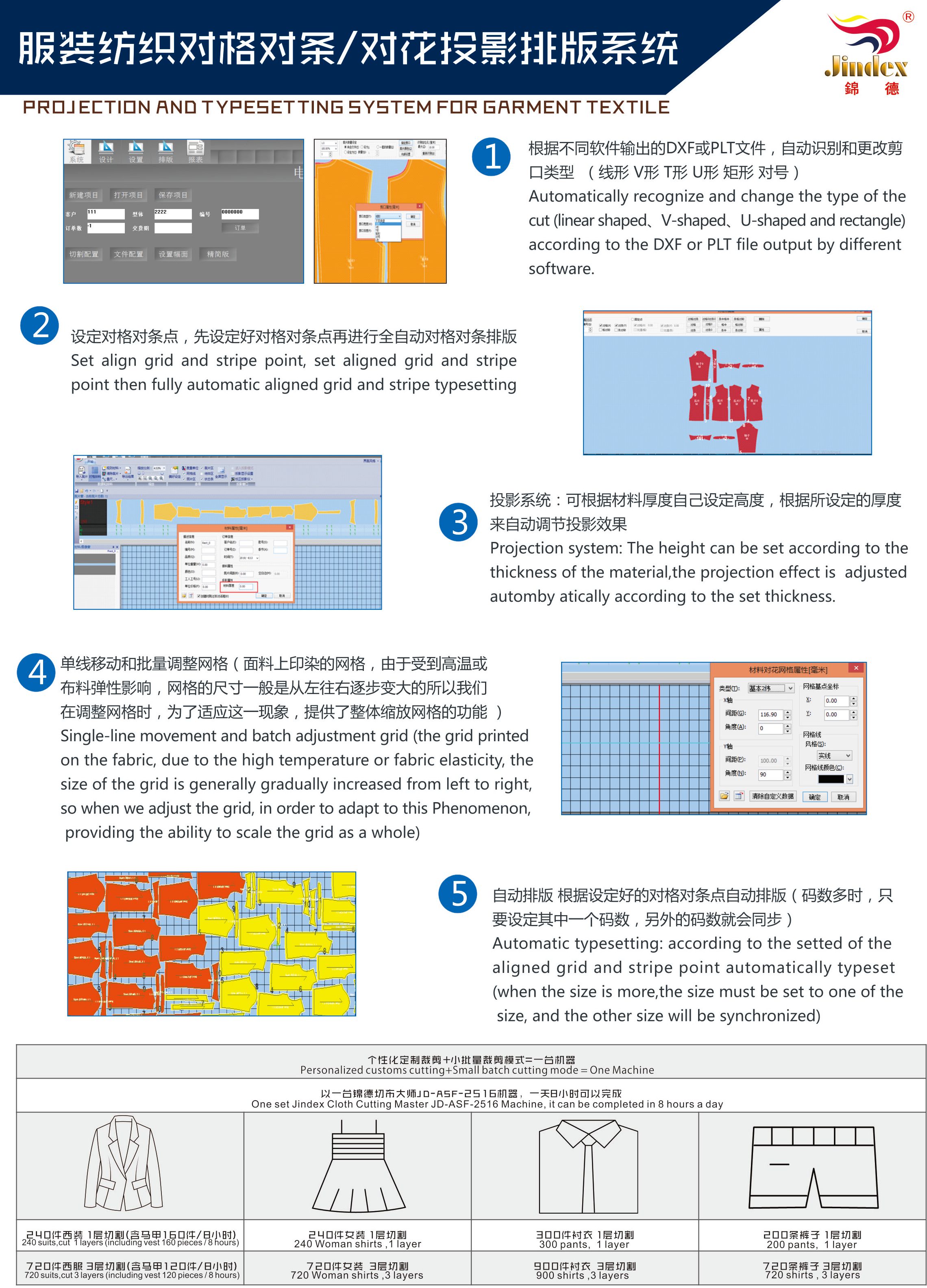 Product Feature: 1. Non-uniform/uniform grid cloth can be used in super automatic discharging 2 The projection grid line doesnt change thickness and deformation, with higher precision. 3. The grid can be saved and used again next time 4. Compatible with the strongest file formats,AAMA, clothing and shoe samples, DXF, TIIP, ASTM, CUT, ISO, PLT and Hpgl;, 5. Local grid setting and over-row cutting are carried out in the grid 6. Multi-set cutting is able to display and typeset in accordance with the color separation of the multi-set